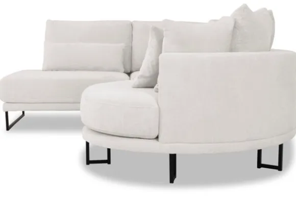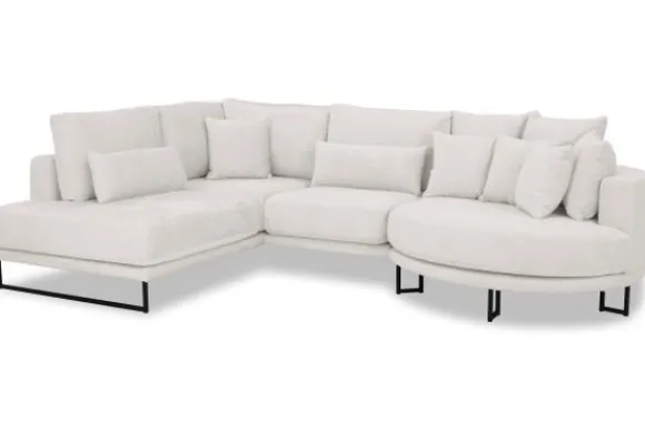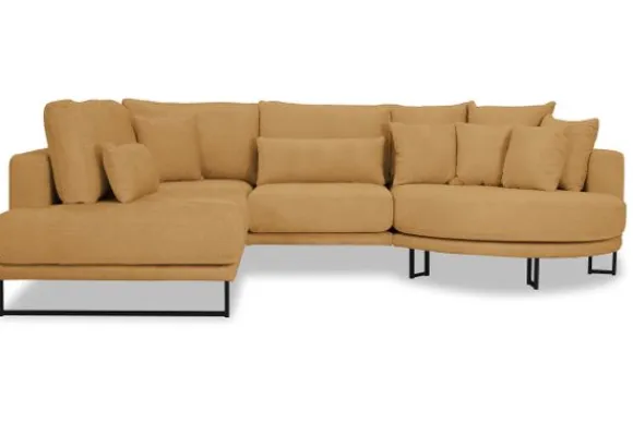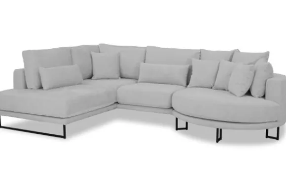 Hoekbank Dordoni II van het merk Be Inspired is verkrijgbaar in alle kleuren en in materiaalsoorten zoals ribstof, teddy en velvet. Je kunt kiezen uit diverse afmetingen. De Dordoni II bank wordt standaard uitgevoerd met alle sierkussens en lendekussens die ook op de foto te zien zijn. Je kunt dus lekker wegkruipen tussen alle sierkussens. De rugkussens daarachter zijn lekker hoog, deze combinatie zorgt voor een goede ondersteuning van de rug. Alle rugkussens zitten los en zijn omkeerbaar, de zitkussens zitten vast met klittenband. Deze bank oogt ruimtelijk door de hoge metalen sledepoten.