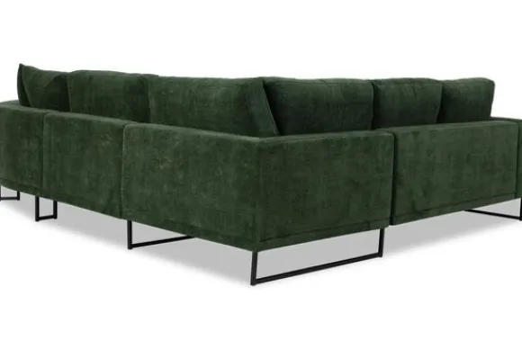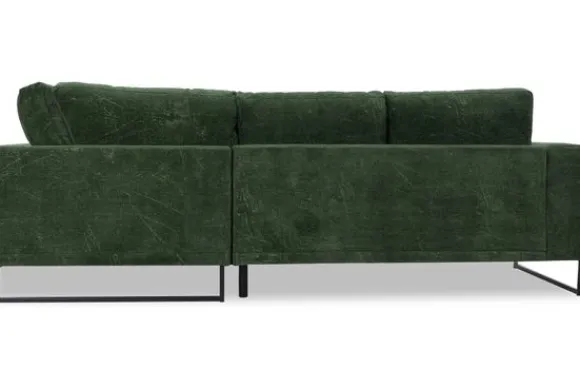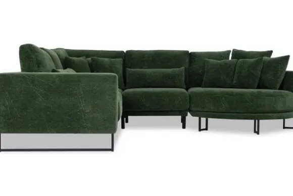 Hoekbank Dordoni II van het merk Be Inspired is verkrijgbaar in alle kleuren en in verschillende materiaalsoorten zoals ribstof, teddy en velvet. Je kunt kiezen uit diverse afmetingen. De Dordoni II bank wordt standaard uitgevoerd met alle sierkussens en lendekussens die ook op de foto te zien zijn. De rugkussens daar achter zijn lekker hoog, deze combinatie zorgt voor een goede ondersteuning van de rug. Alle rugkussens zitten los en zijn omkeerbaar, de zitkussens zitten vast met klittenband. Het unieke aan de Dordoni II is het ronde loungegedeelte. Je kunt hier lekker wegkruipen tussen alle sierkussens. Deze bank oogt ruimtelijk door de hoge metalen sledepoten.