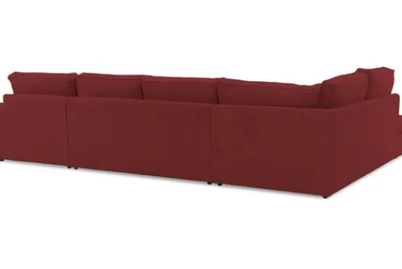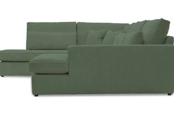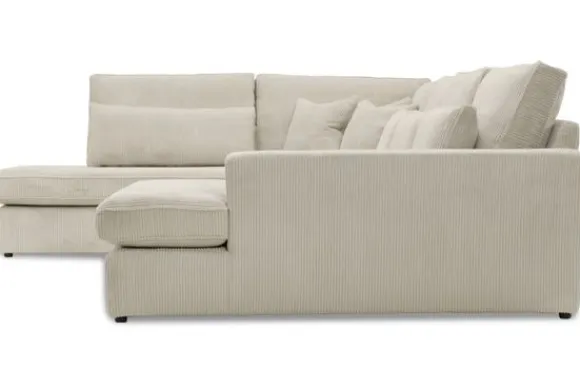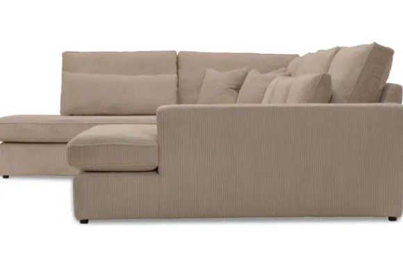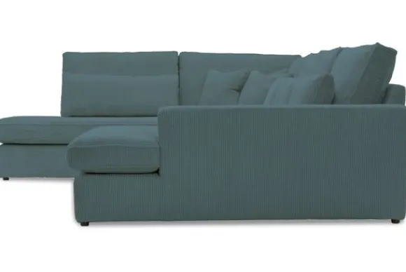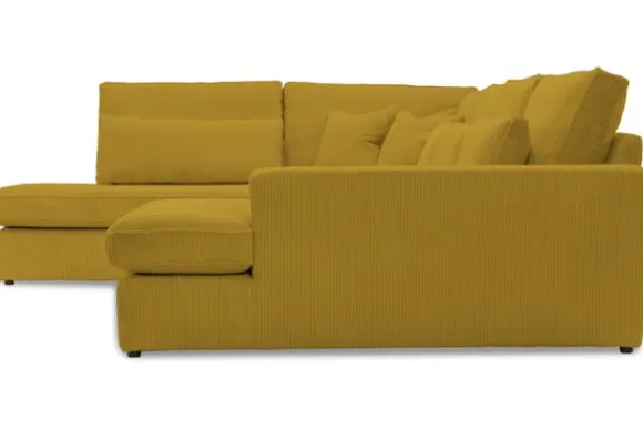 Hoekbank Romee van het merk Berg & Herk Meubelen heeft losse zit- en rugkussens en een robuuste zitting die doorloopt tot net boven de grond. De bank wordt standaard geleverd met de sier- en lendekussens die te zien zijn op de foto’s.