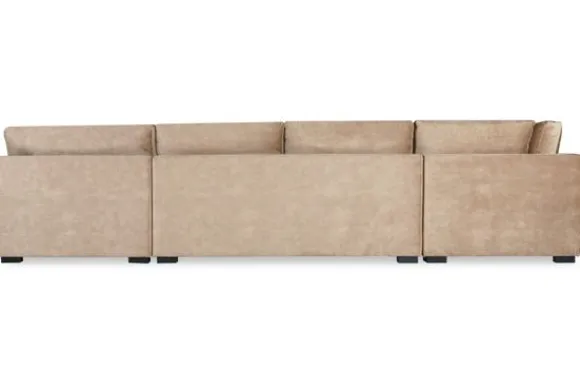 Hoekbank Frederique van het merk Givenchie is een toonbeeld van stijl, comfort en functionaliteit. Deze bank is standaard voorzien van een massief houten romp met stalen nosagvering. Op de nosag vering wordt een viltlaag gezet en daarbovenop zijn de losse zitkussens gelegd. Deze zitkussens zijn gevuld met koudschuim, met een kern van pocketveren waardoor de kussens nog veerkrachtiger zijn maar wel lekker comfortabel. De onderkant van de zitkussens zijn standaard voorzien van klittenband zodat deze niet kunnen gaan schuiven. Alle kussens zijn voorzien van ritsen waardoor je ze gemakkelijk kan laten reinigen.