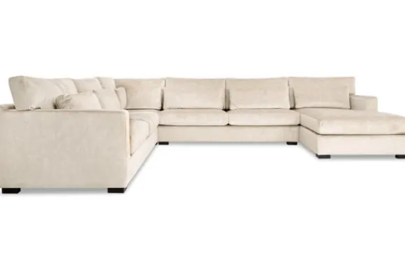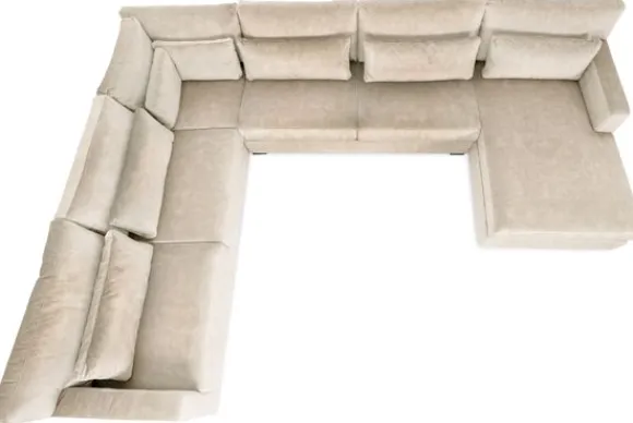 Naast comfort en design biedt de Frederique slimme functionaliteiten voor de ultieme relax ervaring. De 2-zitselementen kunnen worden uitgerust met een slaap-/Netflixfunctie, waardoor de bank in een handomdraai transformeert tot een royale loungeplek of extra slaapplek. Optionele extra opbergruimte is te vinden in het longchair element, waarbij de zitting omhoog geklapt kan worden om dekens, kussens of andere accessoires netjes op te bergen. Ook kan je kiezen voor rechte rugkussens voor een moderne, strakke look of T-vormige kussens die sierlijk over de armleuning vallen en de bank een nonchalante, uitnodigende uitstraling geven.