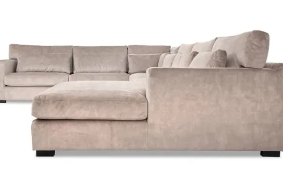 Hoekbank Frederique van het merk Givenchie is een toonbeeld van stijl, comfort en functionaliteit. Deze bank is standaard voorzien van een massief houten romp met stalen nosagvering. Op de nosag vering wordt een viltlaag gezet en daarbovenop zijn de losse zitkussens gelegd. Deze zitkussens zijn gevuld met koudschuim, met een kern van pocketveren waardoor de kussens nog veerkrachtiger zijn maar wel lekker comfortabel. De onderkant van de zitkussens zijn standaard voorzien van klittenband zodat deze niet kunnen gaan schuiven. Alle kussens zijn voorzien van ritsen waardoor je ze gemakkelijk kan laten reinigen.