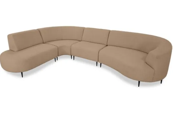 Hoekbank Payton van het merk Kenzo is een verfijnde en stijlvolle toevoeging aan elk interieur, met een uniek design dat wordt gekenmerkt door ronde, organische vormen. De rug- en armleuningen vloeien moeiteloos in elkaar over, wat zorgt voor een harmonieus en modern geheel. Een comfortabele zit wordt gegarandeerd door de hoogwaardige nosag vering, afgedekt met polyamide, en een vulling van koudschuim HR38, afgewerkt met een zachte laag dacron.