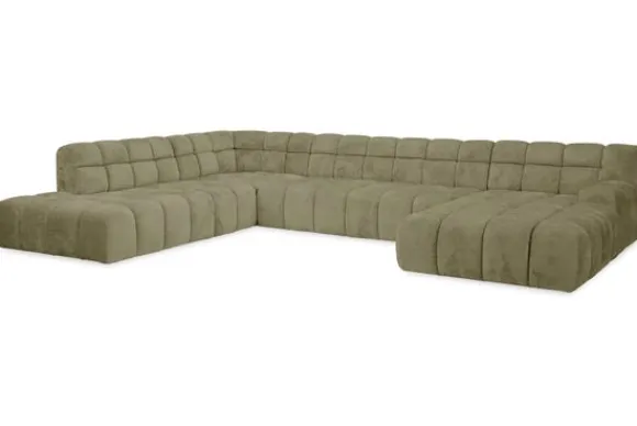 Je kunt kiezen uit verschillende materialen, waaronder stoffen als velvet en boucle. Daarnaast is de bank verkrijgbaar in uiteenlopende kleuren.
