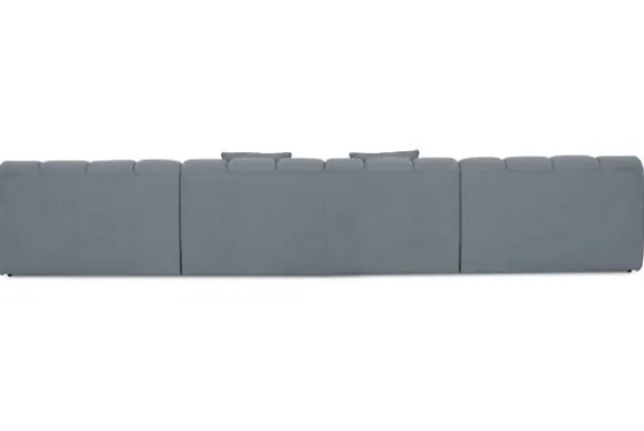 Bankstel Trentino van het merk Moderno is een bank met geblokte zit- en rugkussens en een zitting die doorloopt tot net boven de grond.