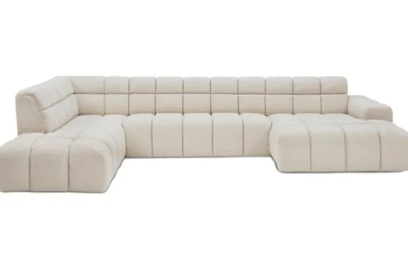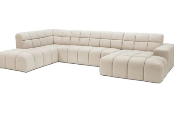 Je kunt kiezen uit verschillende materialen, waaronder stoffen als velvet en boucle. Daarnaast is de bank verkrijgbaar in uiteenlopende kleuren.