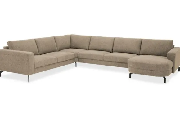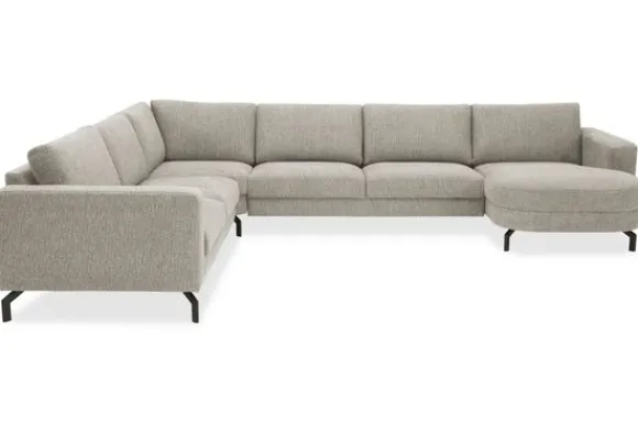 Hoekbank Seattle van het merk Smit Meubelen is verkrijgbaar in alle kleuren en verschillende materiaalsoorten als stof, velvet en rundleder. Daarnaast is deze bank verkrijgbaar in verschillende afmetingen en opstellingen. De bank heeft een strakke uitstraling dankzij de hoge, metalen pootjes en de vaste zitkussens. Extra sierkussens in de hoek die zorgen voor extra comfort zijn optioneel.