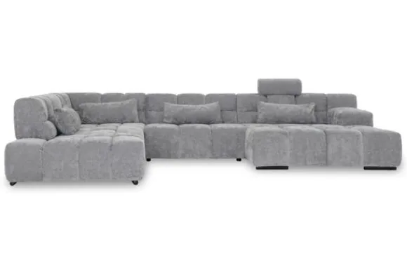 Dit bankstel is samen te stellen in vele afmetingen en verschillende opstellingen, of kies uit een van de standaard opstellingen. Ook kan je kiezen uit mat zwarte of chroom pootjes en zijn er bijpassende hoofdsteunen, sier- en lendekussens en poefjes beschikbaar. Deze worden uitgevoerd in dezelfde stof als de bank.