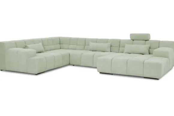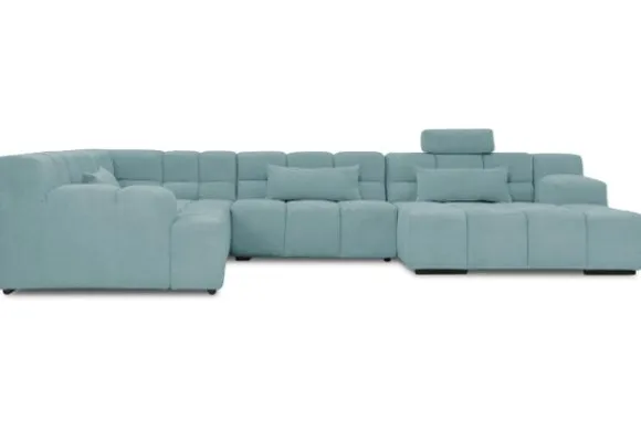 Dit bankstel is samen te stellen in vele afmetingen en verschillende opstellingen, of kies uit een van de standaard opstellingen. Ook kan je kiezen uit mat zwarte of chroom pootjes en zijn er bijpassende hoofdsteunen, sier- en lendekussens en poefjes beschikbaar. Deze worden uitgevoerd in dezelfde stof als de bank.