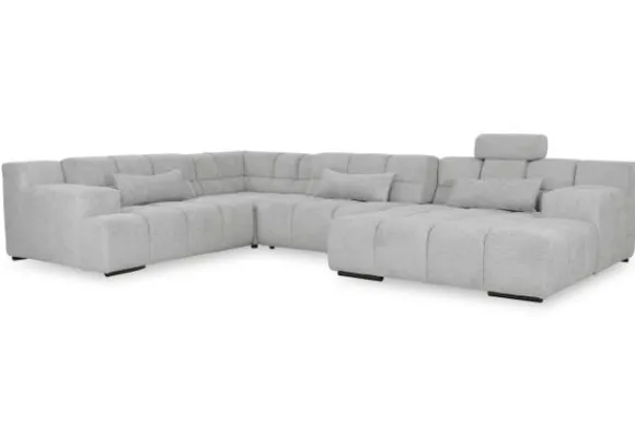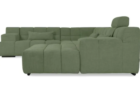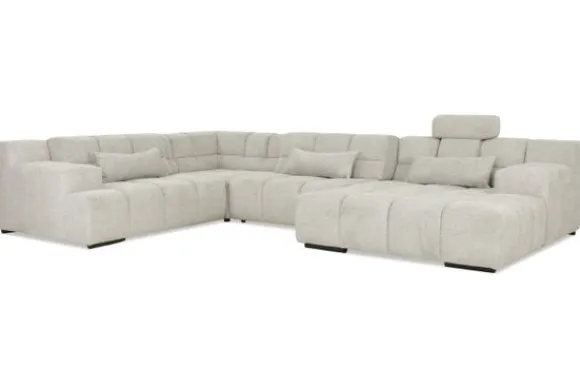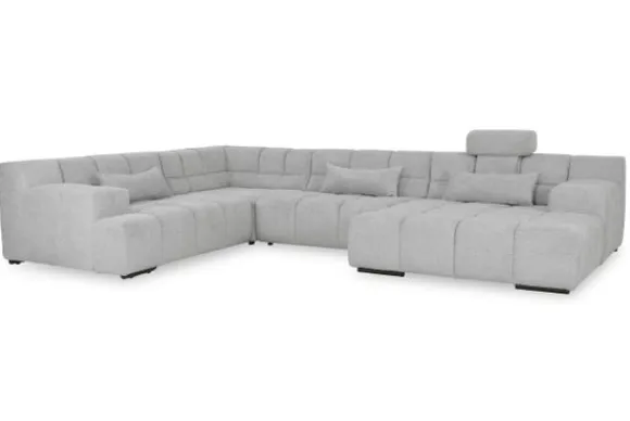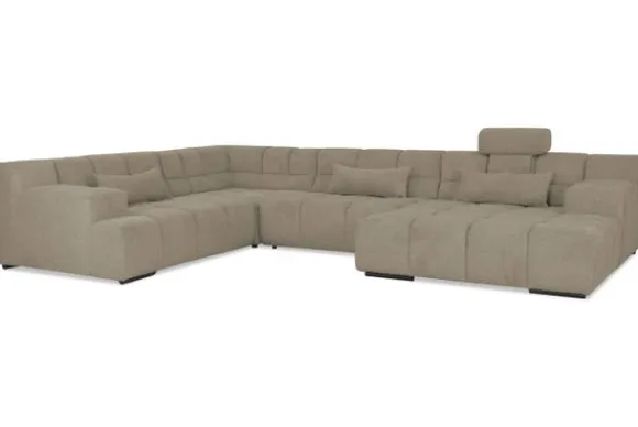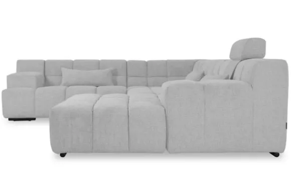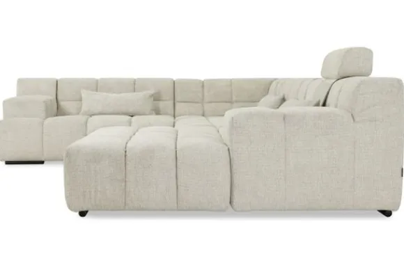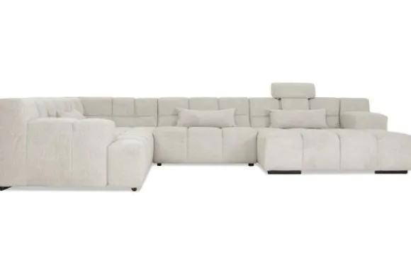 Dit bankstel is samen te stellen in vele afmetingen en verschillende opstellingen, of kies uit een van de standaard opstellingen. Ook kan je kiezen uit mat zwarte of chroom pootjes en zijn er bijpassende hoofdsteunen, sier- en lendekussens en poefjes beschikbaar. Deze worden uitgevoerd in dezelfde stof als de bank.