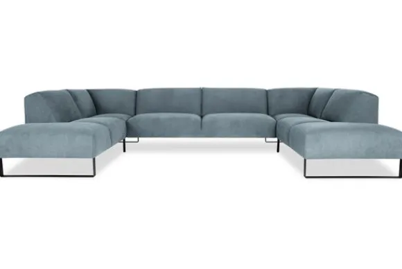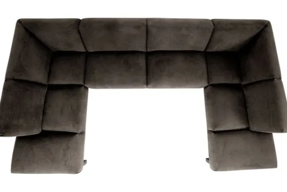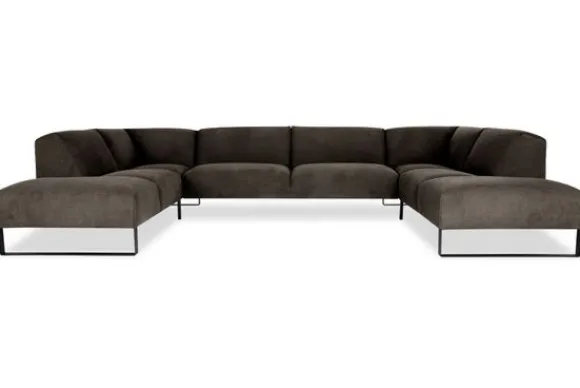 Bij dit bankstel zijn een koppelbare houten tafel en een hocker optioneel.