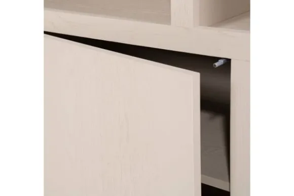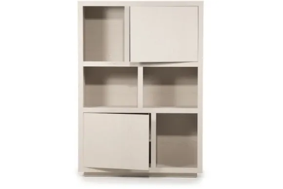 Het kabinet heeft open vakken in diverse formaten en is voorzien van twee deuren. Deze indeling biedt ruimte voor servies, woonaccessoires of boeken. De combinatie van open en gesloten vakken zorgt voor overzicht en praktisch gebruik. Het kabinet maakt deel uit van de Helsinki met bijpassende meubels.