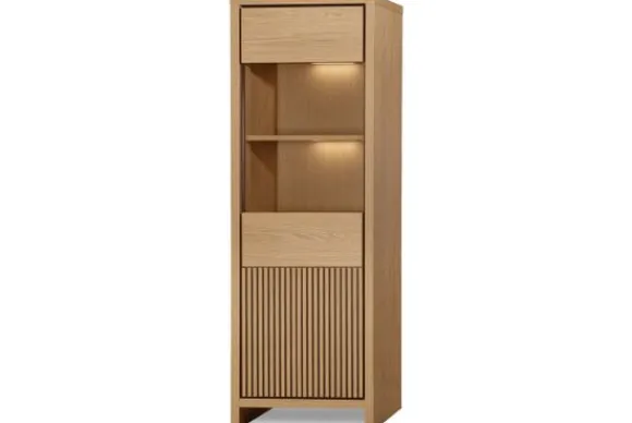 Vitrinekast Odense – Levanzo van het merk Lamulux is uitgevoerd in de kleur blond oak en heeft een rustige en moderne uitstraling. Door de combinatie van een glazen deur en een dichte deur past deze vitrinekast goed in een modern, Scandinavisch of Japandi interieur.