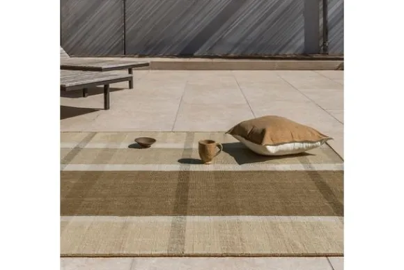 Vloerkleed Zona Block Stripe Cashew 497501 van het merk Brink & Campman is een outdoor vloerkleed beschikbaar in vier verschillende afmetingen. Wat bijdraagt aan de charme van dit buitenkleed is zijn dubbelzijdige gratie, die een veelzijdigheid biedt die de levensduur verlengt. De onregelmatige draden en het vakmanschap van handweven vormen een intrigerende mix met de gerecyclede PET-garens. Dit zorgt ervoor dat het kleed gemakkelijk schoon te maken is en geen vloeistoffen absorbeert. Dit is een duurzaam vloerkleed.