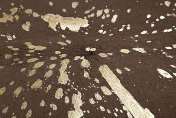 Vloerkleed Glam 110 Bruin Goud van het merk Divendo is verkrijgbaar in verschillende afmetingen en kleuren. Het ontwerp van dit leren vloerkleed kenmerkt zich door het echt geverfde leer, elegante gouden accenten en de natuurlijke contour. Aantrekkelijke uitsparingen die variëren in vorm en maat geven het tapijt een unieke uitstraling. Dankzij de bedrukte folie-elementen in het goud straalt de koeienhuid luxe en elegantie uit. Creëer een gezellige en elegante sfeer in huis door het koeienhuid vloerkleed te gebruiken als vloerbedekking, stoelhoes of wandkleed. Dit gezellige vloerkleed kan ook toegepast worden in ruimtes die voorzien zijn van vloerverwarming.