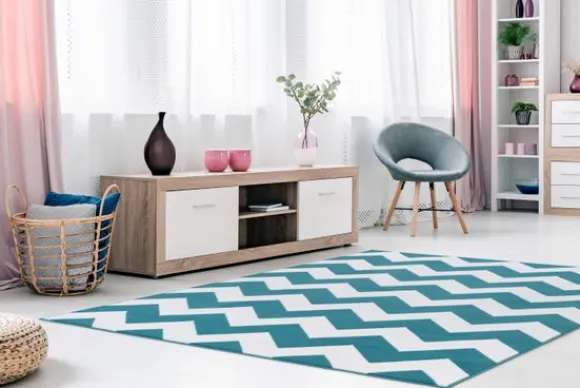 Vloerkleed Manolya 2095 Turquoise van het merk Divendo is verkrijgbaar in verschillende afmetingen en kleuren. Dit designstuk krijgt zijn vrolijke uitstraling door het geometrische zigzagpatroon in trendy kleuren. De prachtige kleurcontrasten zijn meesterlijk gecombineerd en brengen tegelijkertijd een ingenieuze structuur in elke ruimte. Of het nu als vrolijk middelpunt is of als harmonieuze toevoeging aan je interieur: dit creatieve vloerkleed is een echte aanwinst. De robuuste oppervlaktestructuur zorgt voor een hoge kwaliteit. Het tapijt voldoet aan alle moderne wooneisen en vormt een smaakvolle basis voor de moderne woonruimte, of het nu gaat om een woonkamer, entree, eetkamer of elders. Het stijlvolle contourkleed overtuigt niet alleen door zijn zachte kleur, maar ook door zijn heerlijk dichte pool.
