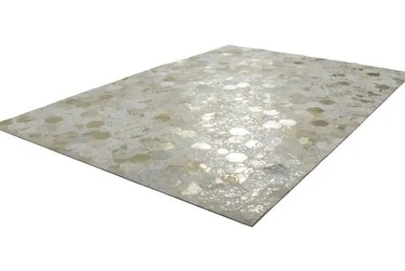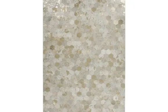 Vloerkleed Spark 210 Ivoor Goud van het merk Divendo is verkrijgbaar in verschillende afmetingen, designs en kleuren. Het prachtige lederen tapijt met goudkleurig metaalfolie rondt elke elegante inrichtingsstijl vakkundig af. Het hoogwaardige, elegante vloerkleed van 100% leer geeft een luxeus tintje aan de omgeving en zorgt voor een heel bijzondere flair. Het kleed is met de hand gemaakt, dus elk leren tapijt is uniek. Het gebruik van fijne natuurlijke materialen en hoogwaardige afwerking zorgen voor een dynamische uitstraling en maken elk tapijt uniek, omdat natuurlijke producten tot 30% in vorm, kleur en patroon kunnen variëren. Het moderne honingraatpatroon geeft het vloerkleed een bijzonder tintje.