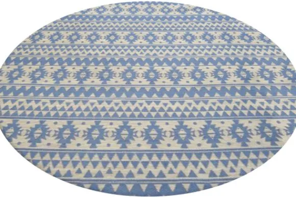 Vloerkleed Sunny 210 Lichtblauw van het merk Divendo is verkrijgbaar in verschillende kleuren. Daarnaast is dit kleed ook in het rechthoekig beschikbaar. Het vloerkleed is met de hand gemaakt van 100% polyester en is dankzij het robuuste materiaal bestand tegen alle weersomstandigheden. Regen, fel zonlicht of wind kunnen het tapijt niet beschadigen; het behoudt zijn vorm en kleur lang. Verplaats jouw woonruimte in de zomer naar buiten en neem het vloerkleed mee. Met de 5 mm hoge pool kan je jouw tuin, balkon of terras een heel bijzondere flair geven.