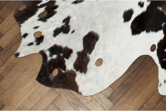 Vloerkleed Glam 210 Zwart Wit van het merk Divendo is verkrijgbaar in verschillende afmetingen. Het ontwerp van dit leren vloerkleed kenmerkt zich door het echte leer en de natuurlijke contour. Aantrekkelijke uitsparingen die variëren in vorm en maat geven het tapijt een unieke uitstraling. Creëer een gezellige en elegante sfeer in huis door het koeienhuid vloerkleed te gebruiken als vloerbedekking, stoelhoes of wandkleed. Dit gezellige vloerkleed kan ook toegepast worden in ruimtes die voorzien zijn van vloerverwarming.