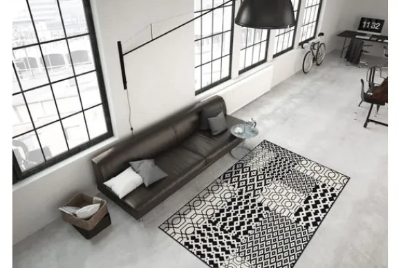 Vloerkleed Lina 325 Multi Zwart van het merk Divendo is verkrijgbaar in verschillende afmetingen. De lijnen en vormen worden driedimensionaal benadrukt met behulp van het speciale drop-stitch-proces, waardoor een modern, uniek ontwerp ontstaat. Het kleed kan dienen als eyecatcher in de woonkamer of als vloerkleed in de gang, maar ook als brug in andere woonruimtes zoals de slaapkamer of kantoor. Het zwart- en ivoorkleurige vloerkleed is een absolute ster. Het moderne design brengt de meubels en het vloerkleed prachtig in harmonie en laat ze samensmelten tot een modern kunstwerk.