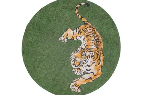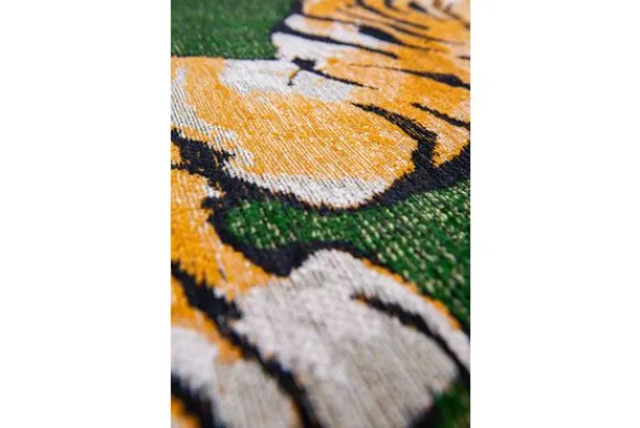 Vloerkleed Pop Green On Fire 9388 van het merk Louis de Poortere is verkrijgbaar in verschillende designs. Daarnaast is de Pop ook in het rechthoekig beschikbaar. Het vloerkleed heeft een uniek design met een tijger op een groene achtergrond en is gemaakt van polyester. Polyester vloerkleden zijn gemaakt van een synthetische stof die ervoor zorgt dat het tapijt stevig is, niet pluist en gemakkelijk te onderhouden is. De onderkant van dit vloerkleed is voorzien van antislip latex.
