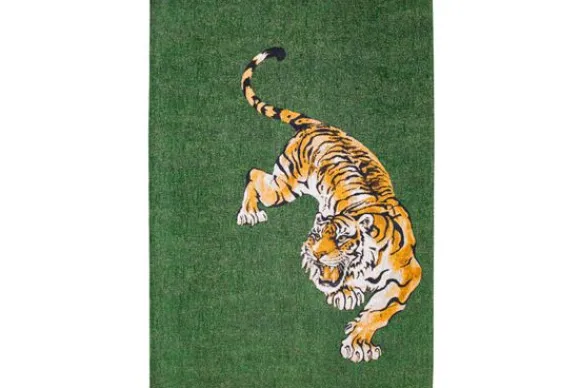Vloerkleed Pop Green On Fire 9388 van het merk Louis de Poortere is verkrijgbaar in vijf afmetingen en verschillende designs. Daarnaast is de Pop ook in het rond beschikbaar. Het vloerkleed heeft een uniek design van een tijger op een groene achtergrond en is gemaakt van polyester. Polyester vloerkleden zijn gemaakt van een synthetische stof die ervoor zorgt dat het tapijt stevig is, niet pluist en gemakkelijk te onderhouden is. De onderkant van dit vloerkleed is voorzien van antislip latex.