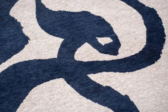 Vloerkleed Ribbon Sea Ink 9849 is onderdeel van de Craft collectie van het merk Louis de Poortere. Dit kleed heeft een ontwerp met een kalligrafisch figuur dat een subtiele kleur geeft aan een ruimte. De Ribbon is een expressief kleed met een artistiek karakter dat een stijlvolle look toevoegt aan je interieur.