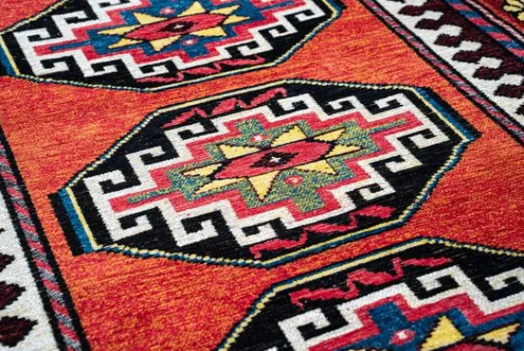 De diepe oranjetonen en kleurrijke accenten creëren een warme basis die het interieur tot leven brengt. Vloerkleed Antiquarian Antalia is niet alleen een functioneel item, maar ook een decoratief middelpunt dat sfeer toevoegt aan elke ruimte.