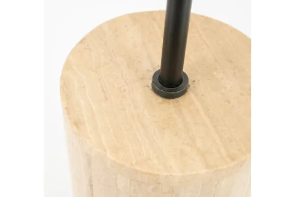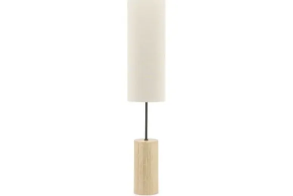 Vloerlamp Amara 240226 van het merk By-Boo is een minimalistische vloerlamp die de Japandi stijl omarmt. De lamp heeft een linnen lampenkap en de voet is gemaakt van travertin. Travertin is een kalksteen in een beige tint die ontstaat in warmwaterbronnen met veel kalk in het water. Deze steensoort kenmerkt zich door de kleine gaatjes die ontstaan door het schuren van takjes, stenen en blaadjes in het water. Travertin is een duurzame steensoort, robuust en makkelijk schoon te maken met een vochtige doek. Elk stuk is uniek, je haalt zo dus echt iets unieks in huis! De vloerlamp wordt exclusief lichtbron geleverd.
