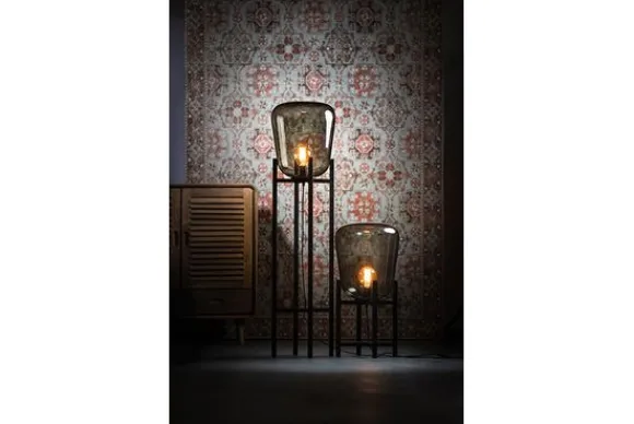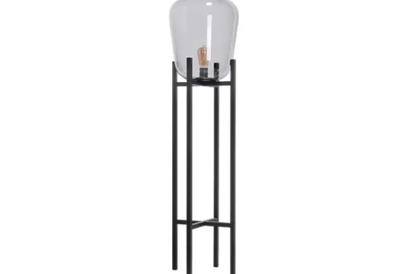 Vloerlamp Benn van het merk ETH is niet alleen mooi wanneer hij brand. Overdag is het ook zeker een plaatje om naar te kijken. De grote lampenkap is voorzien van donkergrijs glas die rust op een metalen frame met een zwarte poedercoating. Door het gekleurde glas geeft de lichtbron sfeervol licht, waardoor het licht niet te fel is. De Benn lampencollectie bestaat uit een hang-, vloer- en tafellamp.