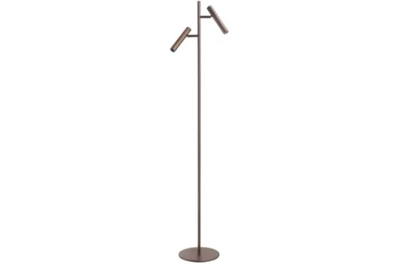 Vloerlamp Piero van het merk Highlight is een choco-metallic gekleurde vloerlamp met een slanke en rustige uitstraling. De lamp is uitgevoerd in metaal en heeft twee verstelbare lichtkoppen die zorgen voor gericht en functioneel licht. Door het minimalistische ontwerp past deze vloerlamp goed in een modern, design of industrieel interieur.