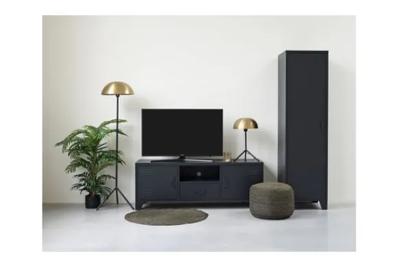 Vloerlamp Globe, uitgevoerd in de kleurencombinatie antiek goud en zwart heeft een ronde, antiek gouden metalen kap die middels de fitting is verbonden aan de speelse zwart metalen driepoot. Deze combinatie van vormen zorgt voor een volumineus en luchtig uiterlijk met heel veel elegantie. Globe heeft een zwart strijkijzerkoord en een E27 fitting. Globe is tevens verkrijgbaar in geheel zwart metaal. Combineer voor een mooie eenheid vloerlamp Globe met tafellamp Globe.