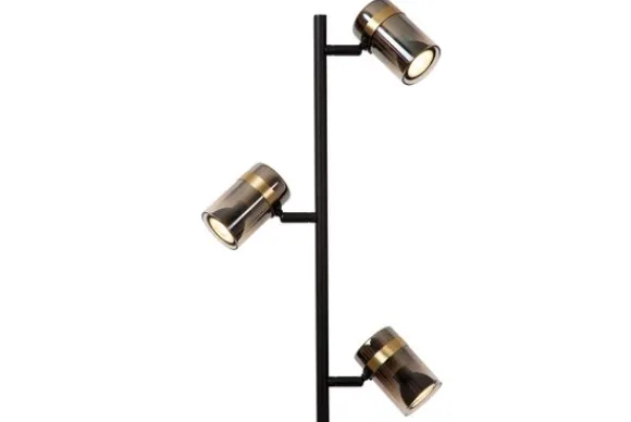 Vloerlamp Upton van het merk Lucide is een verfijnd lichtobject met een moderne, grafische uitstraling. De drie gerichte spots in gerookt glas worden stijlvol omlijst door een goudkleurige ring en zijn subtiel bevestigd aan een slanke, verticale staander in matzwart metaal. Het resultaat is een minimalistisch silhouet met een luxe en eigentijdse flair.