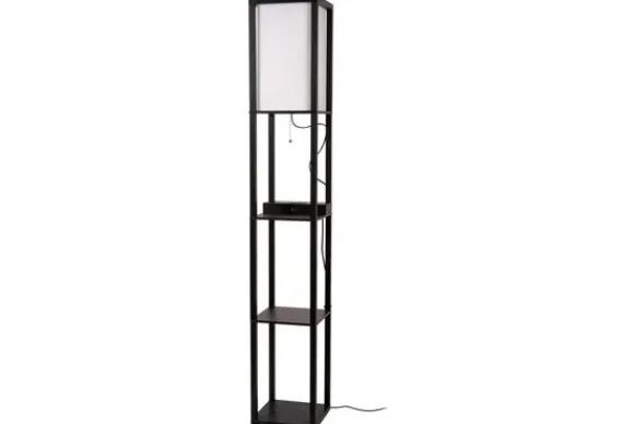 De basis uit hoogwaardig mdf doet dienst als elegant etagerek waarop je boeken, decoratie of je mooiste kamerplant uitstalt. De staande lamp is afgewerkt met een katoenen lampenkap die een zacht, gedempt licht verspreidt.