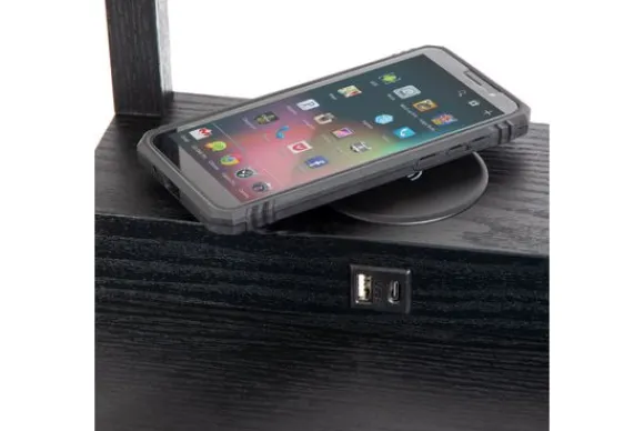 De vloerlamp beschikt over een ingebouwd oplaadplatform voor het draadloos opladen van smart devices. De lamp bedienen doe je eenvoudig met een handige trekschakelaar.