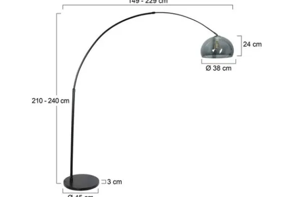 Vloerlamp Sparkled Light 9878ZW van het merk Steinhauer is een zwart metalen grote booglamp met een transparante grijze kap gemaakt van kunststof. De kap heeft een diameter van 38cm en een hoogte van 24cm. Doordat de armatuur in zowel hoogte als diepte te verstellen is kun je het licht schijnen precies waar je wilt. De lamp heeft een E27 fitting en is exclusief lichtbron. Wel is de lamp inclusief een snoer van 250cm met voetschakelaar.