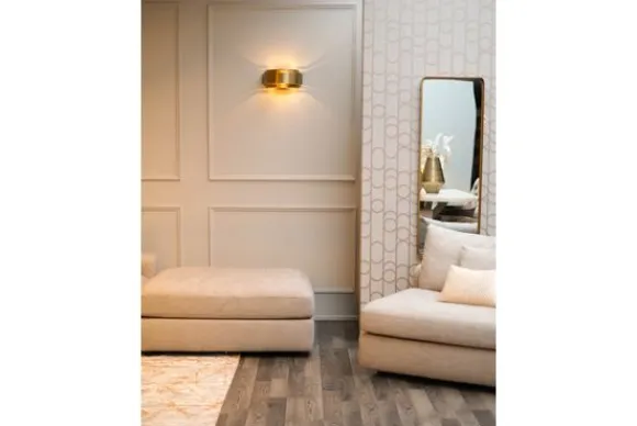 Wandlamp Sofia van het merk Highlight heeft een luxe uitstraling door de gouden kleur. De lamp geeft licht naar beneden en boven. De wandlamp heeft vijf horizontale bogen, waarvan de breedste boog een diameter heeft van 30 cm. Deze wandlamp heeft een stekker.