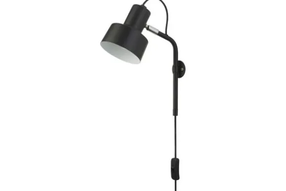 Wandlamp EU60228BK Conical van het merk Searchlight is een moderne lamp gemaakt van mild staal. De buitenkant van de lamp is zwart en de binnenkant is wit.
