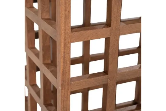 Wandtafel Heras 96576 van het merk Eleonora is uitgevoerd in mangohout met een rechthoekig glazen blad. De open structuur bestaat uit een strak raster van houten vakken. Het glazen blad ligt los op het frame en heeft een transparante afwerking. De warme houtkleur laat een natuurlijke nerf zien. Dit zorgt voor een stabiele en stevige constructie.