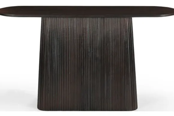 Wandtafel Salvator van het merk Livingfurn is een moderne, rechthoekige tafel met afgeronde punten. De tafel heeft een unieke middenpoot, deze poot is ontworpen met allemaal verticale latjes mangohout. Dit geeft de tafel een prachtige uitstraling. Mangohout kun je herkennen aan de vele kleurschakeringen en ongelijkheden in het oppervlakte van het hout. Hierdoor is geen enkel meubelstuk hetzelfde. De kleuren in mangohout kunnen variëren van licht- tot donkerbruine tonen, met soms een rode gloed of juist een gelige ondertoon. Mangohout is een duurzaam houtsoort. Deze tafel wordt standaard geleverd in de kleur walnoot.