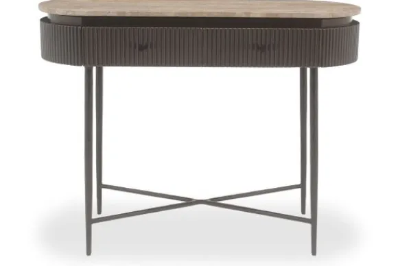 Wandtafel Russo 214324 van het merk Richmond Interiors is een stijlvolle blikvanger met een luxueuze uitstraling. De ovale vorm en het verfijnde lijnenspel in het metalen frame geven deze tafel een moderne, maar warme look.