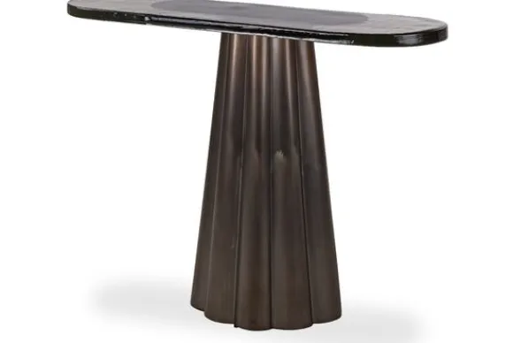 Wandtafel Barwick 214360 van het merk Richmond Interiors is een hoge tafel met een moderne uitstraling. De metalen voet heeft een geplooid ontwerp.