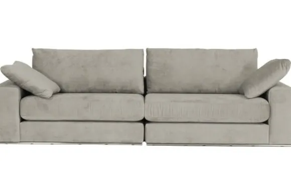 Deze bank wordt standaard uitgevoerd inclusief sierkussens en met een dunne chromen buis onder de bank.
